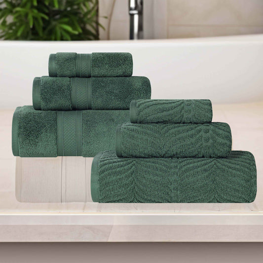 Chevron Zero Twist Solid and Jacquard Soft Cotton 6 Piece Towel Set