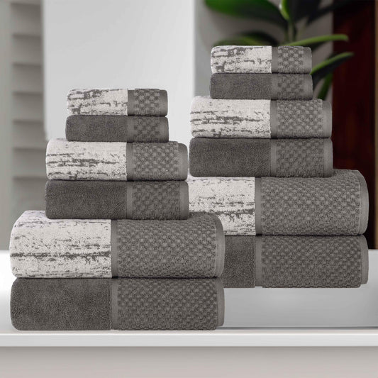 Lodie Cotton Jacquard Solid and Two-Toned 12 Piece Assorted Towel Set
