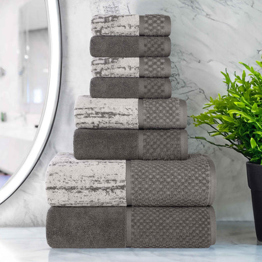 Lodie Cotton Jacquard Solid and Two-Toned 8 Piece Assorted Towel Set