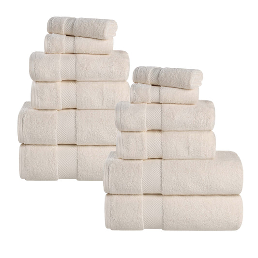 Zero Twist Cotton Ultra-Soft Absorbent Assorted 12 Piece Towel Set