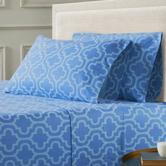 Flannel Brushed Cotton Trellis Geometric Bed Sheet Set