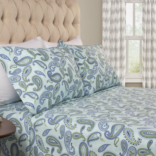 Flannel Brushed Cotton Floral Paisley Deep Pocket Bed Sheet Set