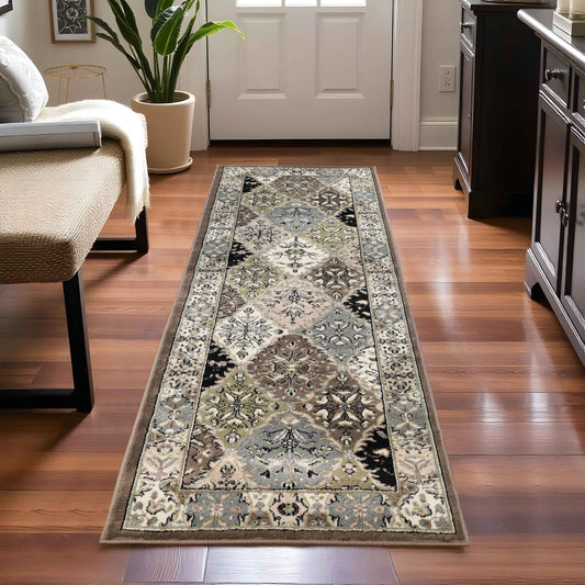 Tribal Geometric Mosaic Indoor Area Rug or Runner Rug
