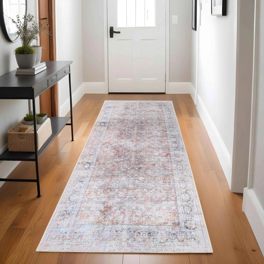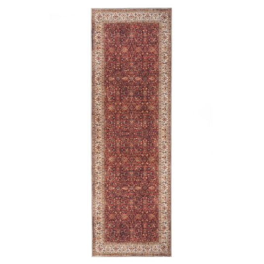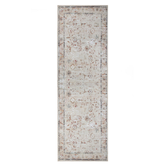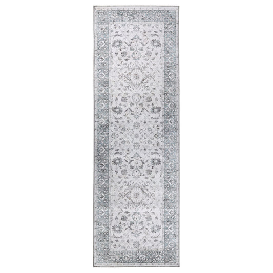 Agra Floral Scroll Border Washable Indoor Area Rug or Runner