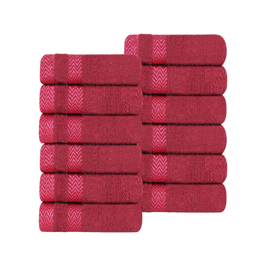 Lodie Cotton Jacquard Solid and Two-Toned Face Towel Washcloth Set of 12