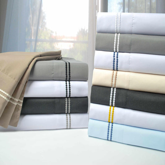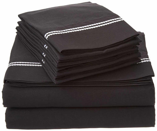2-Line Embroidered Trim Microfiber 6 Piece Solid Sheet Set