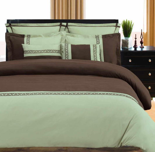 Emma Embroidered Greek Key Reversible 7 Piece Duvet Cover Set
