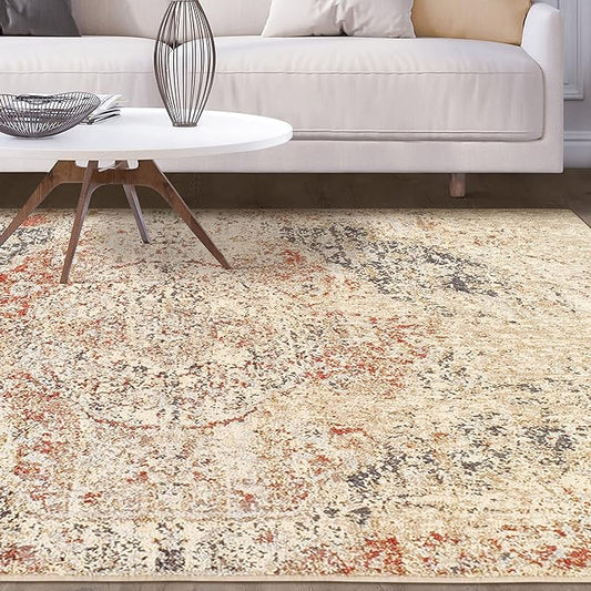 Hedena Traditional Non-Slip Geometric Floral Indoor Washable Area Rug