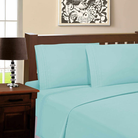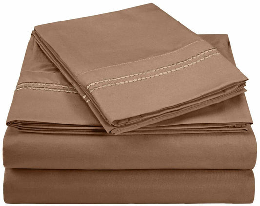 Microfiber 2-Line Embroidery Deep Pocket Solid Bed Sheet Set