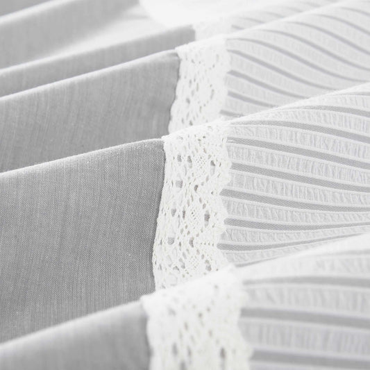 Riverton Textured Stripe 300 Thread Count Lace Trim Duvet Cover Set