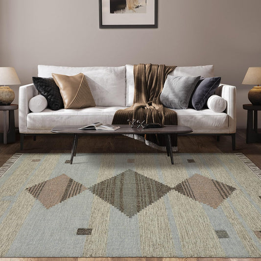 Sayah Eco-Friendly Geometric Handwoven Wool and Cotton Indoor Area Rug