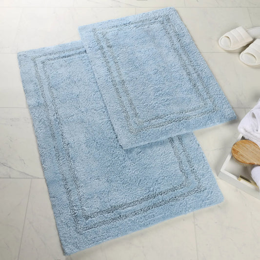 2 Piece Cotton Checkered Solid Non Slip Bath Rug Set