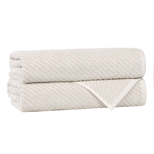 Amelia Cotton Blend Textured Diagonal Ribbed Bath Towels, Set of 2