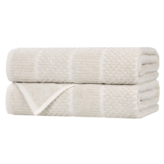 Naples Cotton Blend Textured Checkered & Ribbed Bath Towels, Set of 2
