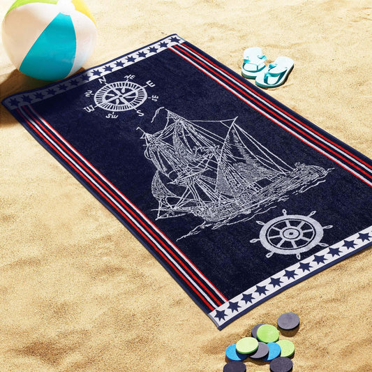 Navy Ship Oversized Cotton 2 Piece Beach Towel Set