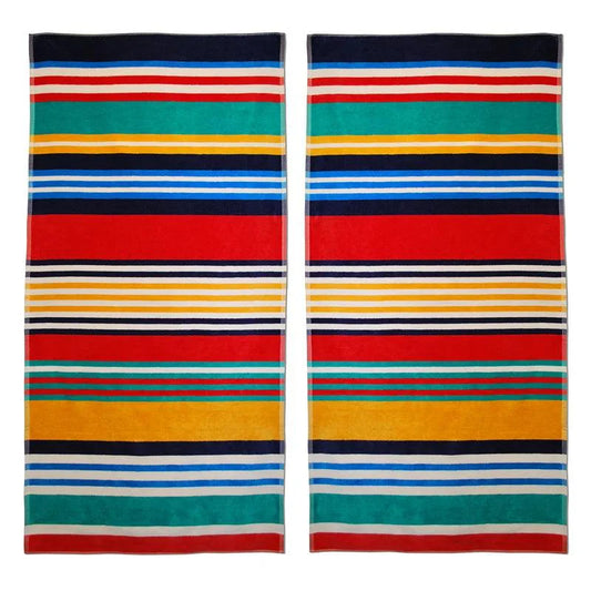Cotton Multicolored Striped Oversized 2 Piece Beach Towel