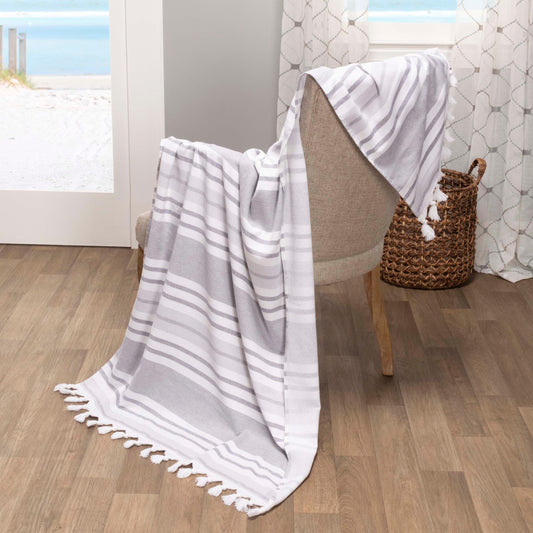 Tropical Cabana Stripe Fouta 2 Piece Beach Towel with Tassels