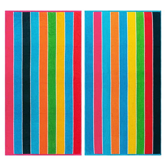 Rainbow Stripes Egyptian Cotton Oversized 2 Piece Beach Towel Set