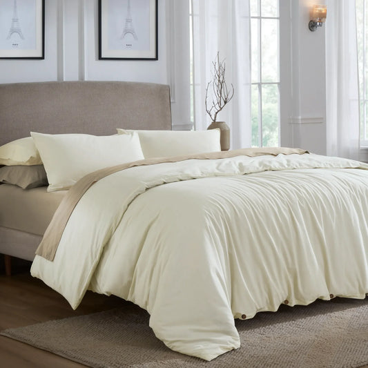 Melange Flannel Cotton Fuzzy Warm Two-Toned Duvet Cover Set