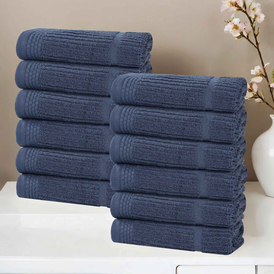 Destin Cotton Blend Textured Ribbed Face Towels Washcloths, Set of 12