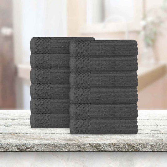 Soho Ribbed Cotton Absorbent Face Towel / Washcloth Set of 12