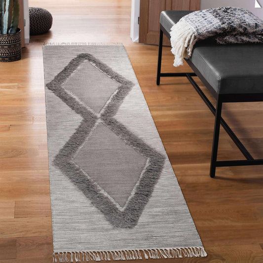 Southwestern Wool Lattice Pattern Fringe Indoor Area or Runner Rug