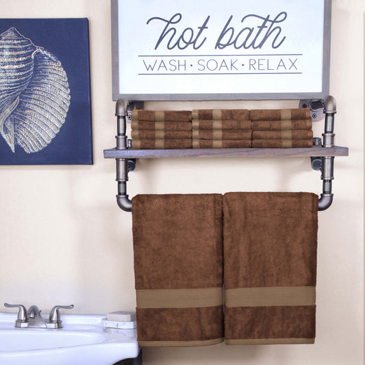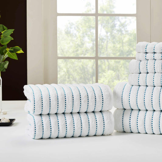 Ribbed Textured Cotton Medium Weight 12 Piece Towel Set