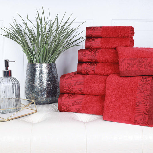 Wisteria Cotton Medium Weight Floral Jacquard Border 8 Piece Towel Set