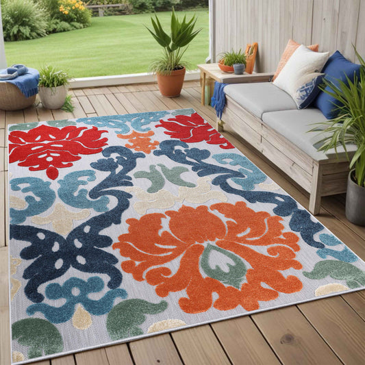 Hydrangea Floral Medallion Indoor Outdoor Area Rug