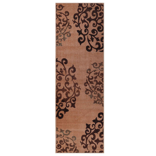 Amber Floral Scroll Medallion Non-Slip Washable Indoor Area Rug or Runner