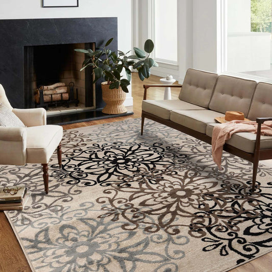 Leigh Non-Slip Modern Floral Medallion Indoor Washable Area Rug