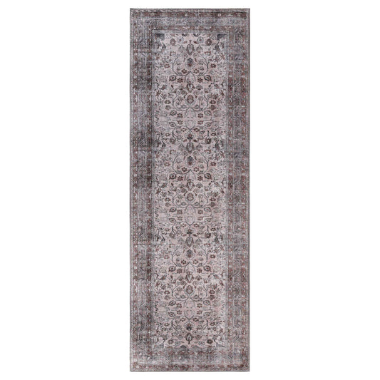 Dove Faded Medallion Machine Washable Indoor Area Rug or Runner Rug