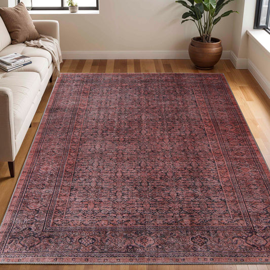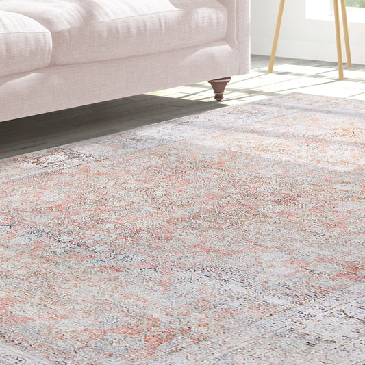 Vintage Oriental Geometric Power-Loomed Indoor Area Rug