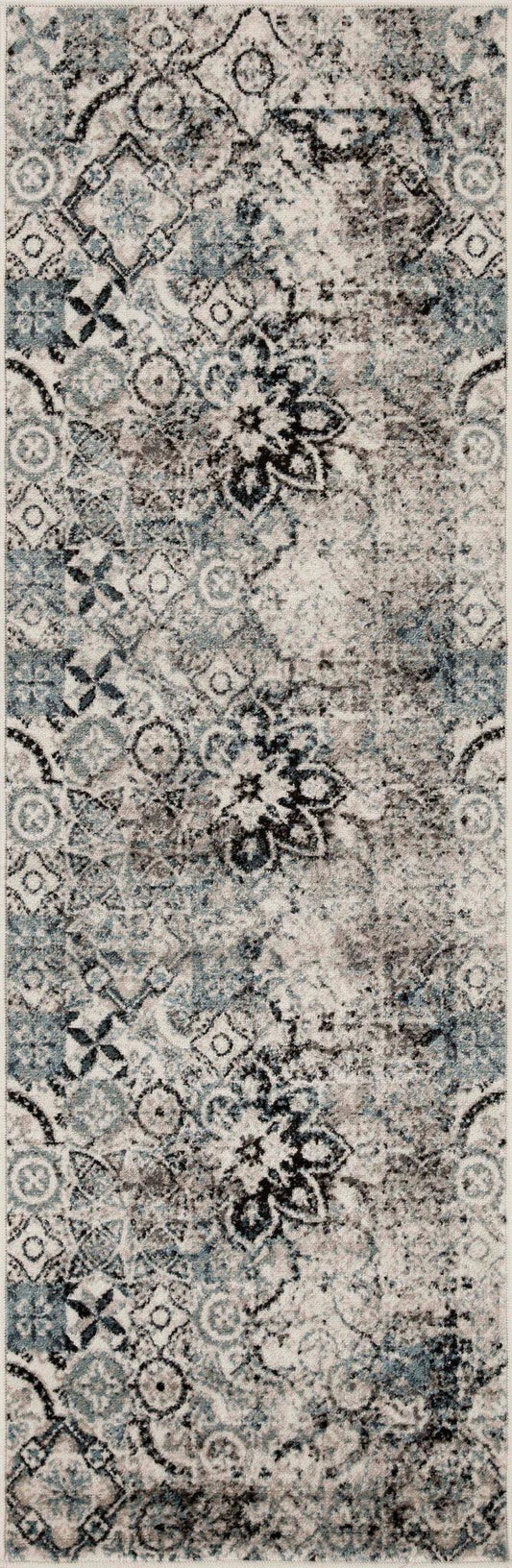 Washed Floral French Design Distressed Indoor Area Rug or Runner