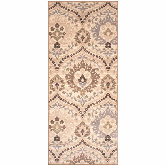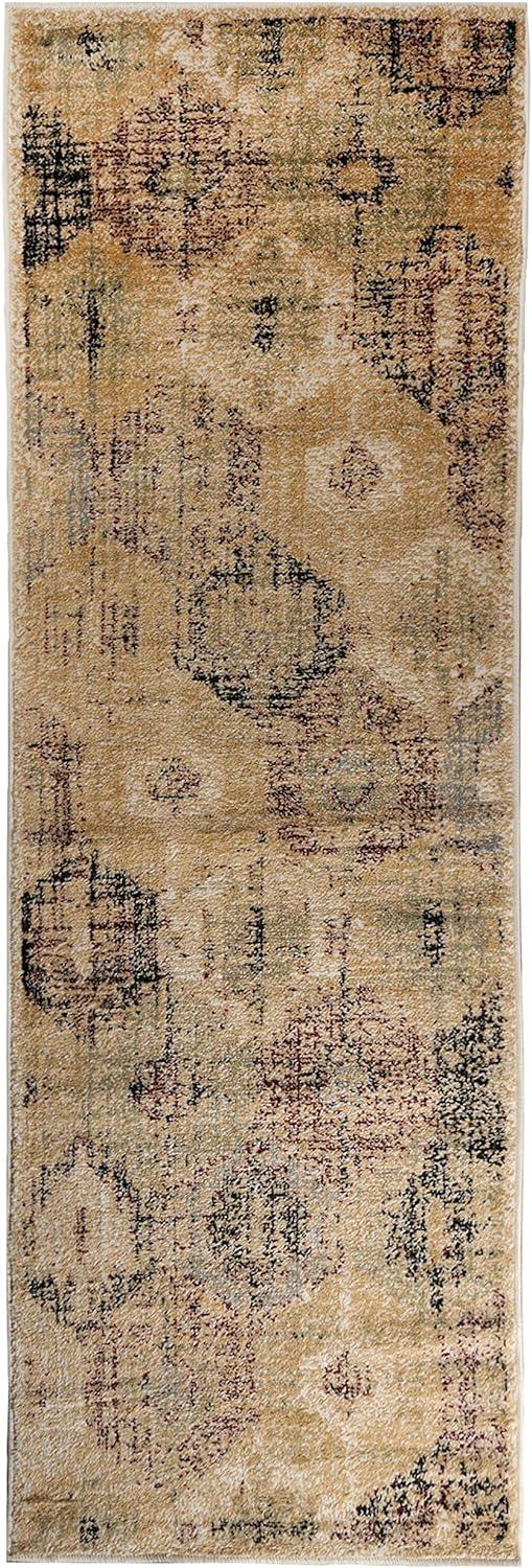 Amber Floral Scroll Medallion Non-Slip Washable Indoor Area Rug or Runner