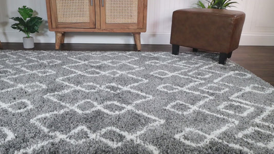 Boho Geometric Diamonds Indoor Plush Shag Area Rug