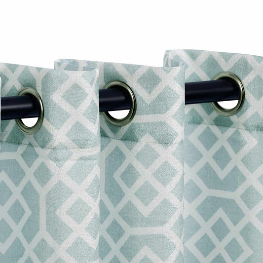 Printed Honey Comb Sheer Curtain Panel Set with Grommet Top Header