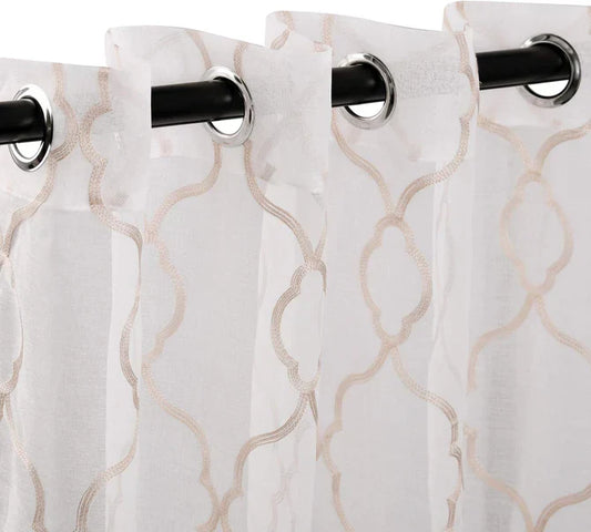 Embroidered Moroccan Lattice 2 Piece Sheer Curtain Set