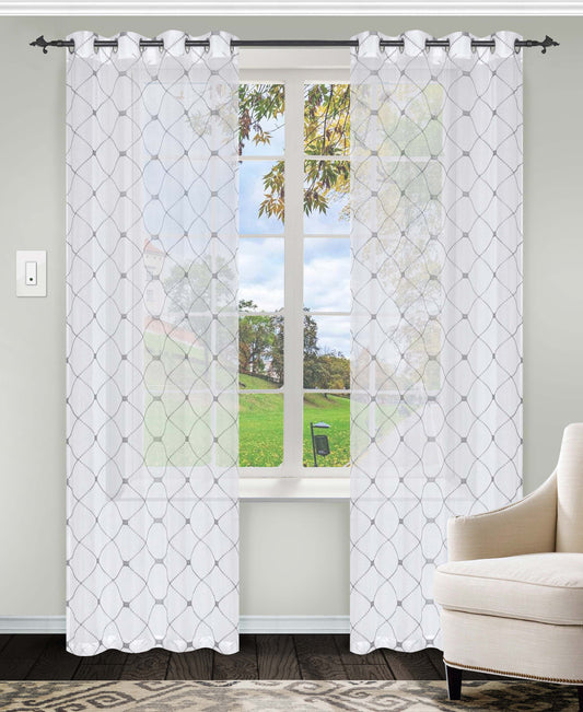Embroidered Argyle Sheer 2-Piece Grommet Curtain Panel Set