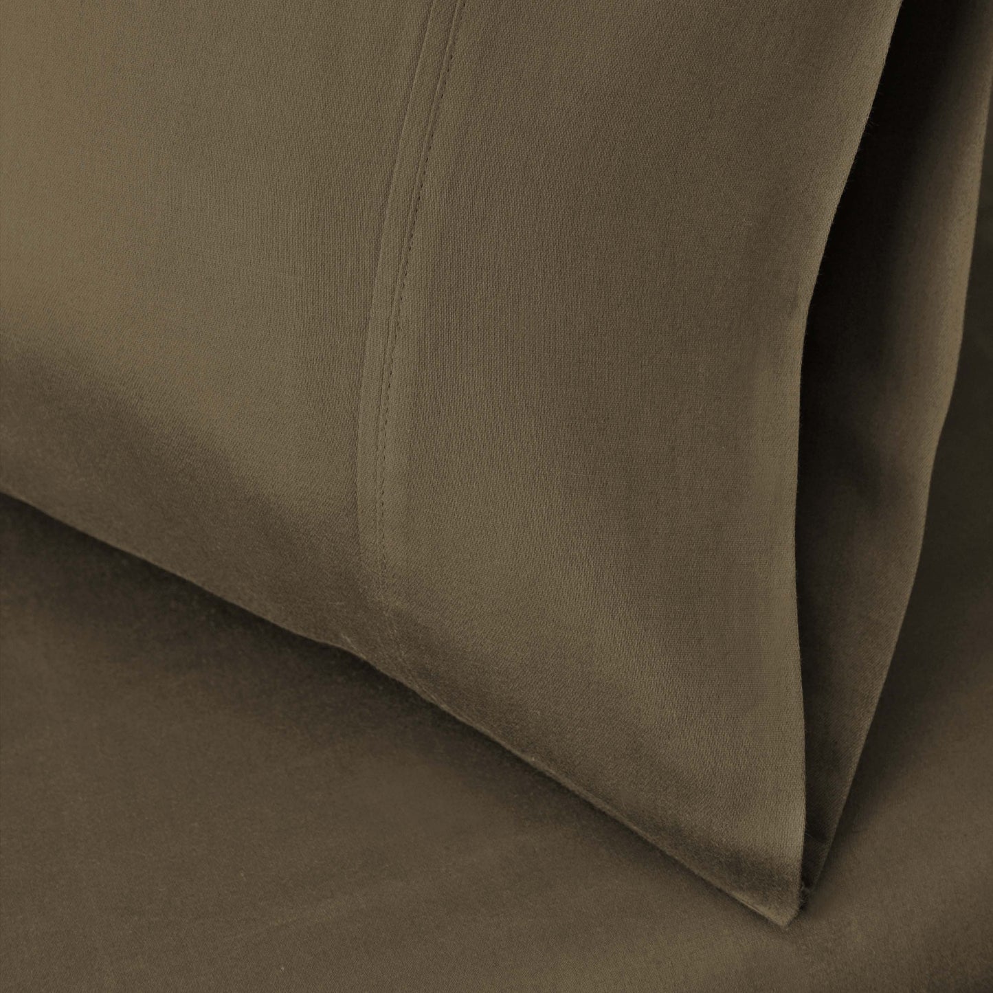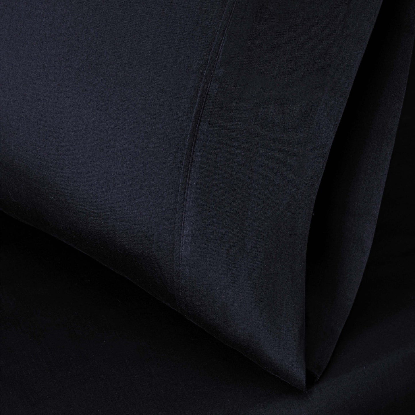 Breathable and ultrasoft, the 1200 Thread Count Solid Cotton Blend 2-Piece Pillowcase Set raises the bar for bedding essentials. The cotton-blend fabric allows air to circulate to help keep you cool while you sleep. Its classic styling features an open end, 4-inch hem, sateen finish, and single pleat detail. The quality craftsmanship withstands the demands of daily use, even in busy households. Sold in pairs, these pillowcases are offered in two different sizes and an array of available colors which can be mixed or matched with your current bedding.