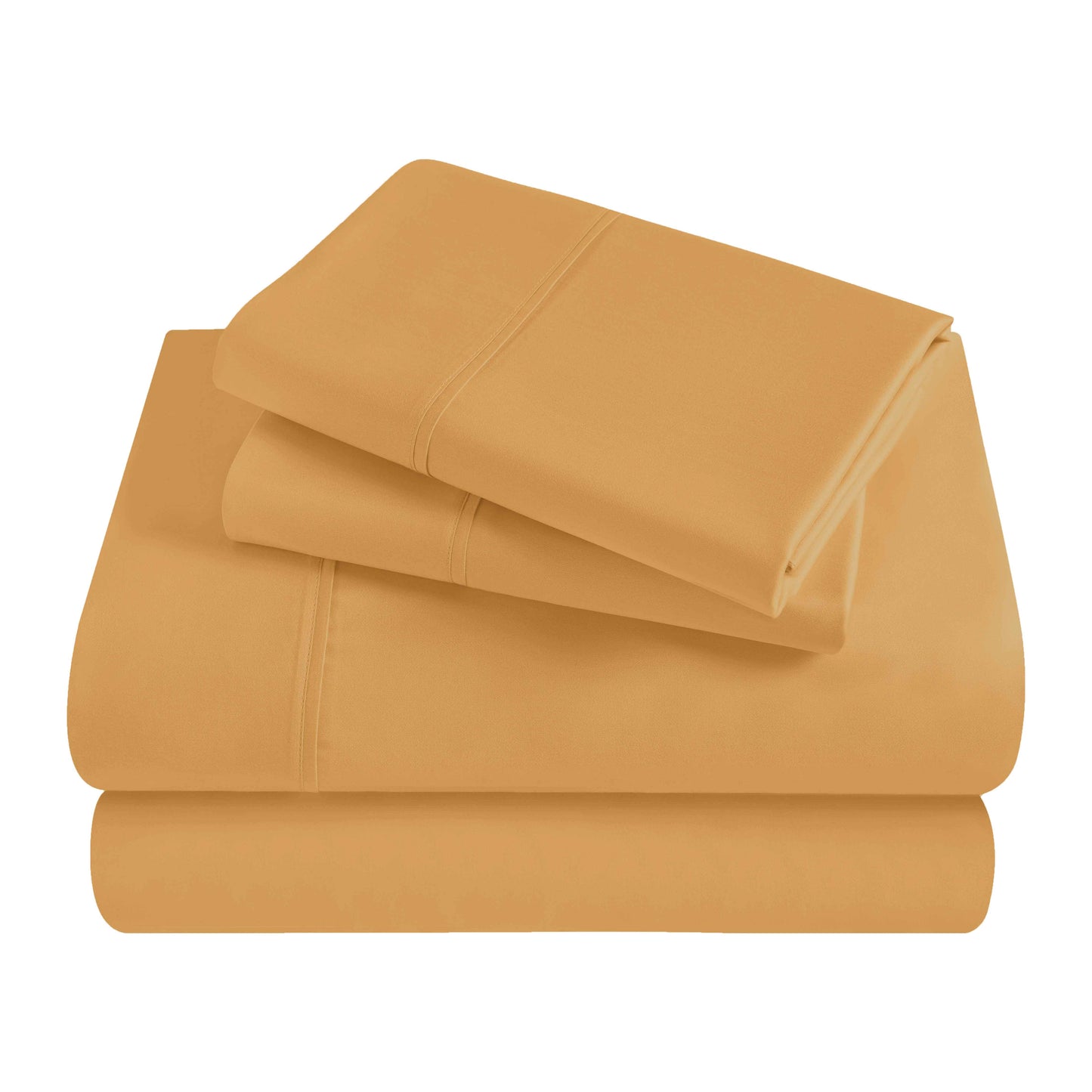 - 4 Piece set includes 1 Flat Sheet, 1 Fitted Sheet and 2 Pillowcases