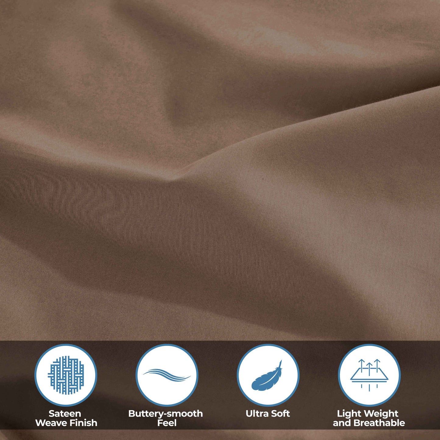 - Additional Features: Buttery-smooth texture; Subtle shimmer from sateen weave finish. Durable and ideal for year-round use; Breathable, naturally luxurious and ultra-soft. Each pillowcase is finished with a 4-inch hem and is open on one end for easy access. For all sizes, this set includes a 15 inch deep pocket fitted sheet to fit mattresses up to 18 inches thick.