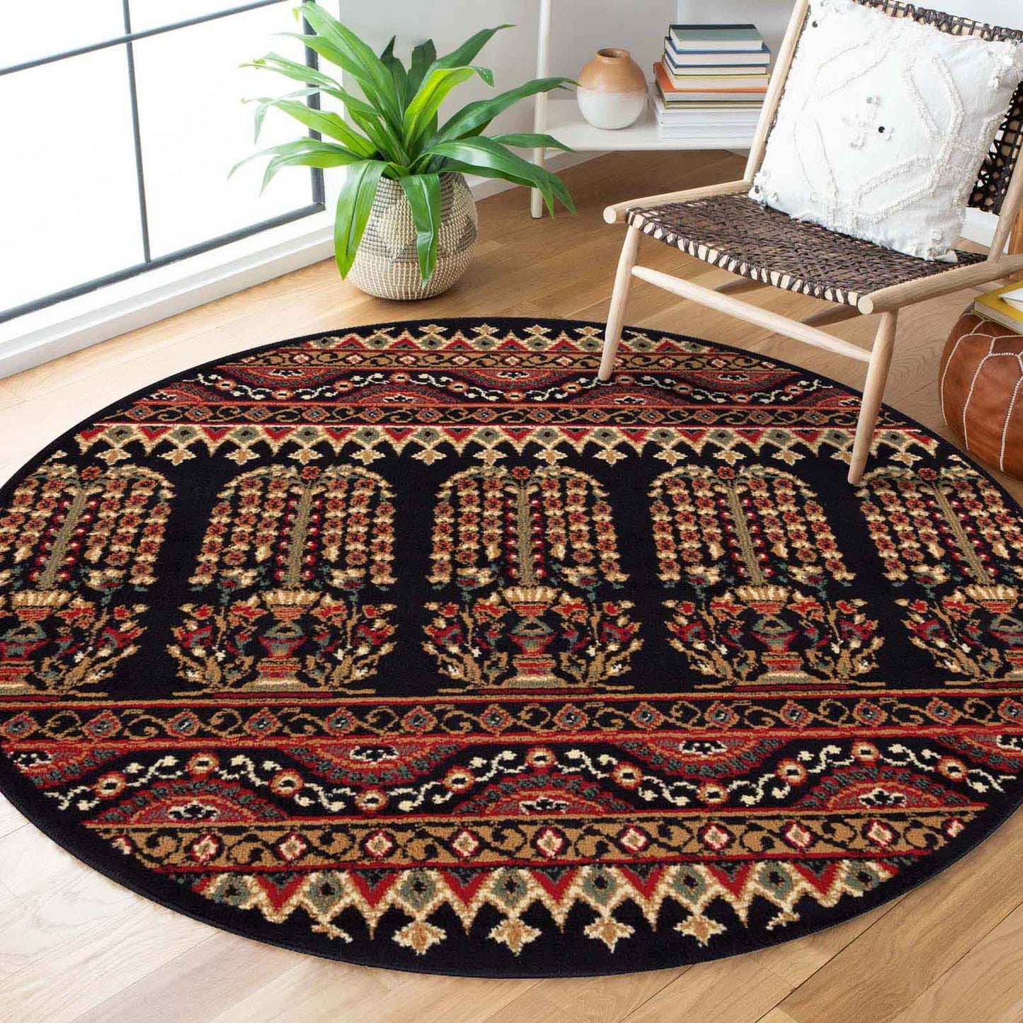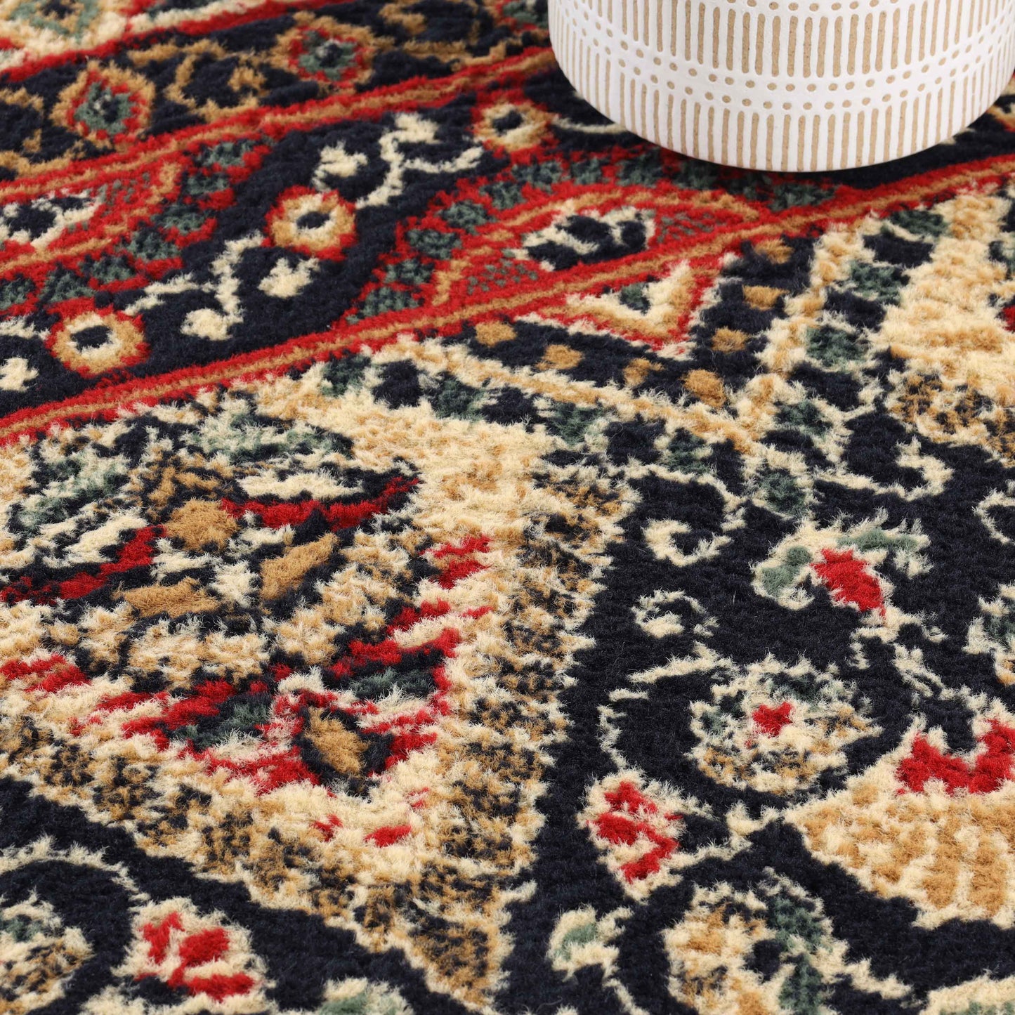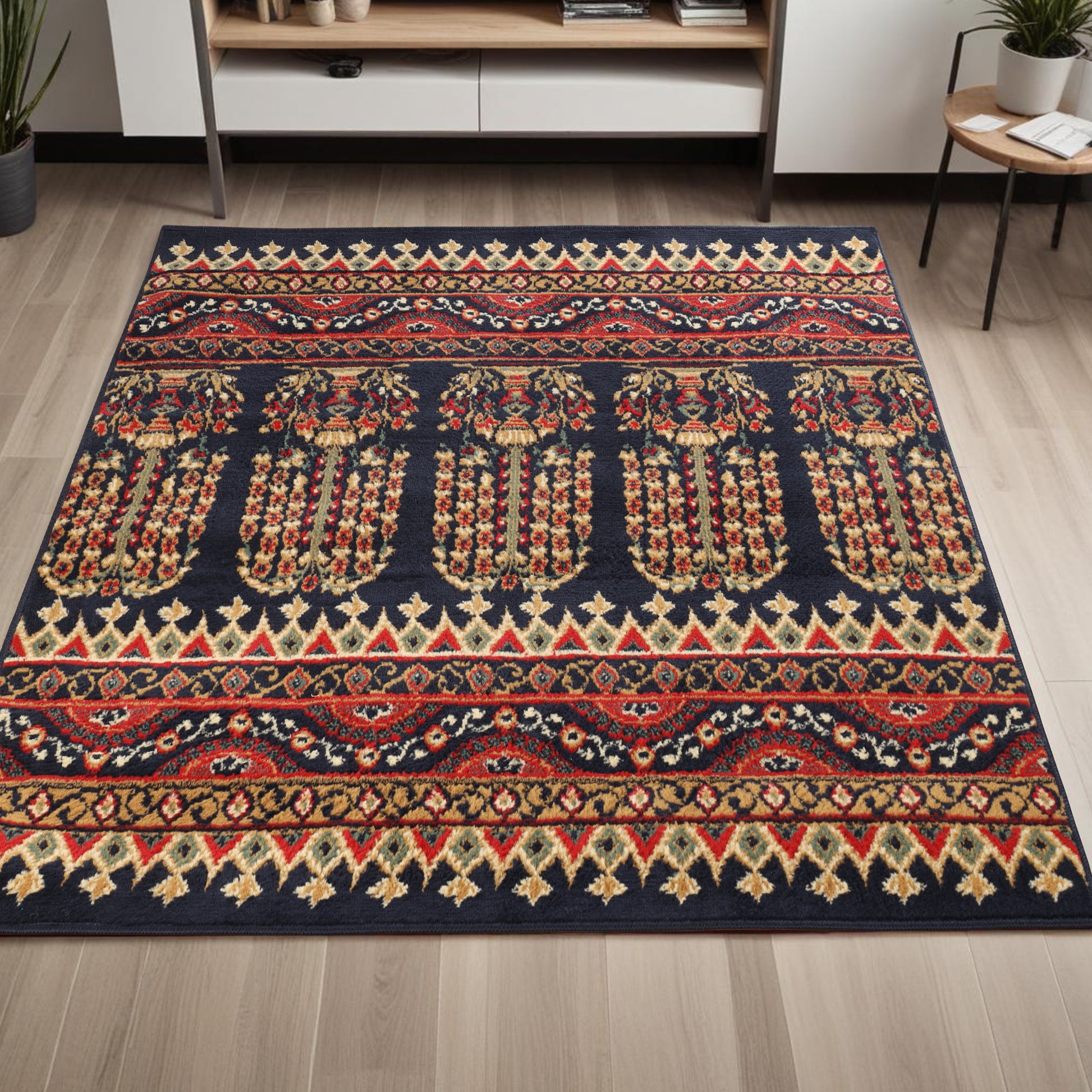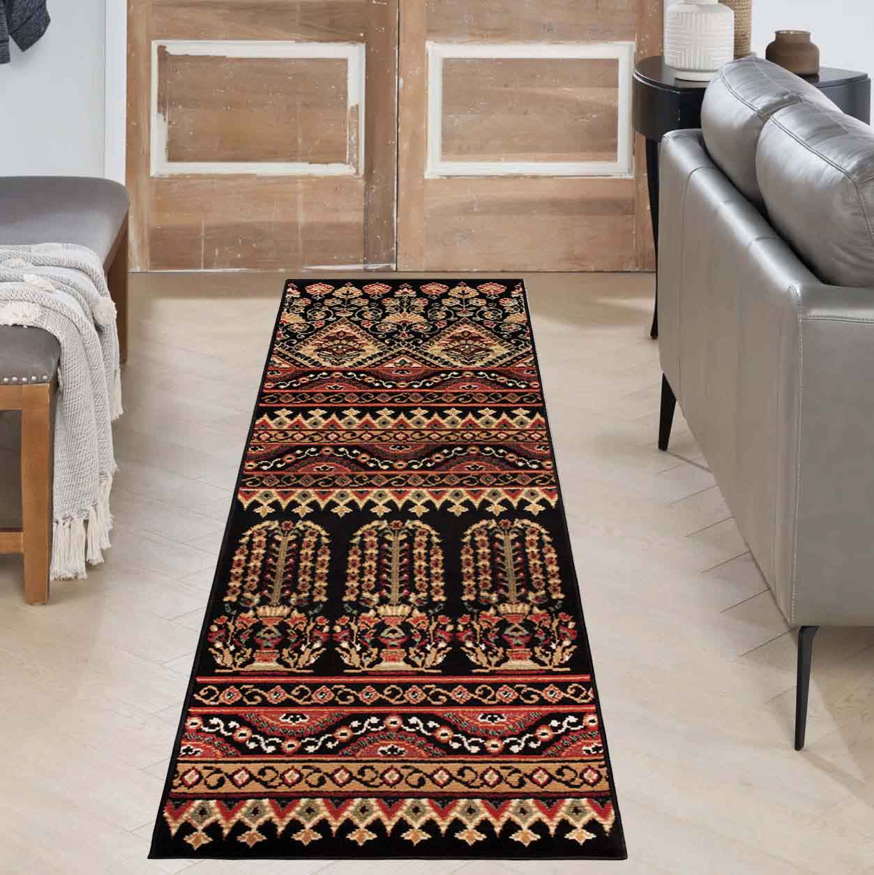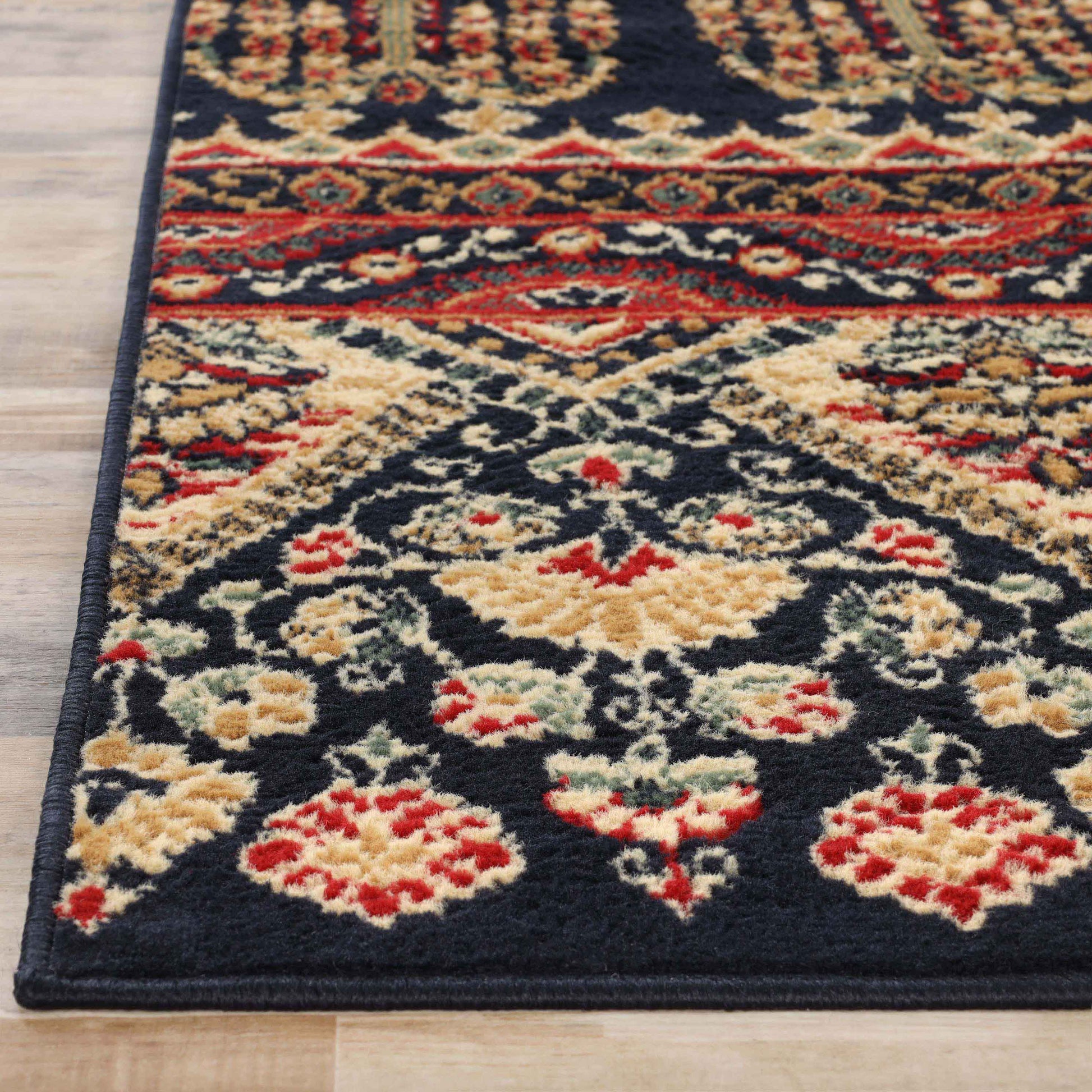 Rich colors and remarkable detail are what make the Adena Bohemian Floral Geometric Tribal Indoor Power-Loomed Area Rug the ideal addition to your boho-styled home. It's one of those rugs that capture attention without overpowering the rest of your decor. Soft, animal-friendly fibers are a treat to step across and will stand up to the rigors of busy households. The sturdy jute backing can handle the busiest rooms of your home while remaining cozy making it ideal for the living room, study, dining, foyer, hallways, or office space. The selection of available sizes ensures just the right fit in your home. A splash of bohemian to your farmhouse dining setting, or rustic cabin décor in a dark, earthy, and vibrant color palette will add an easygoing, yet hypnotic vibe to your ambiance; the zesty Southwestern-inspired motives are breathtaking. The well-made jute backing makes this rug a long-lasting and durable option for homes with children and pets. This area rug is a desirable option if you are looking for outstanding value at an affordable price, which can only be found at Superior.