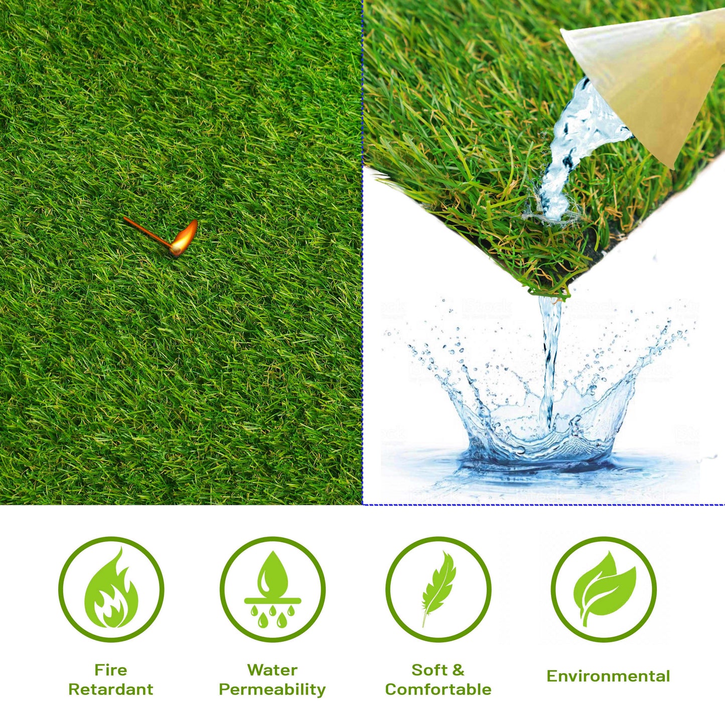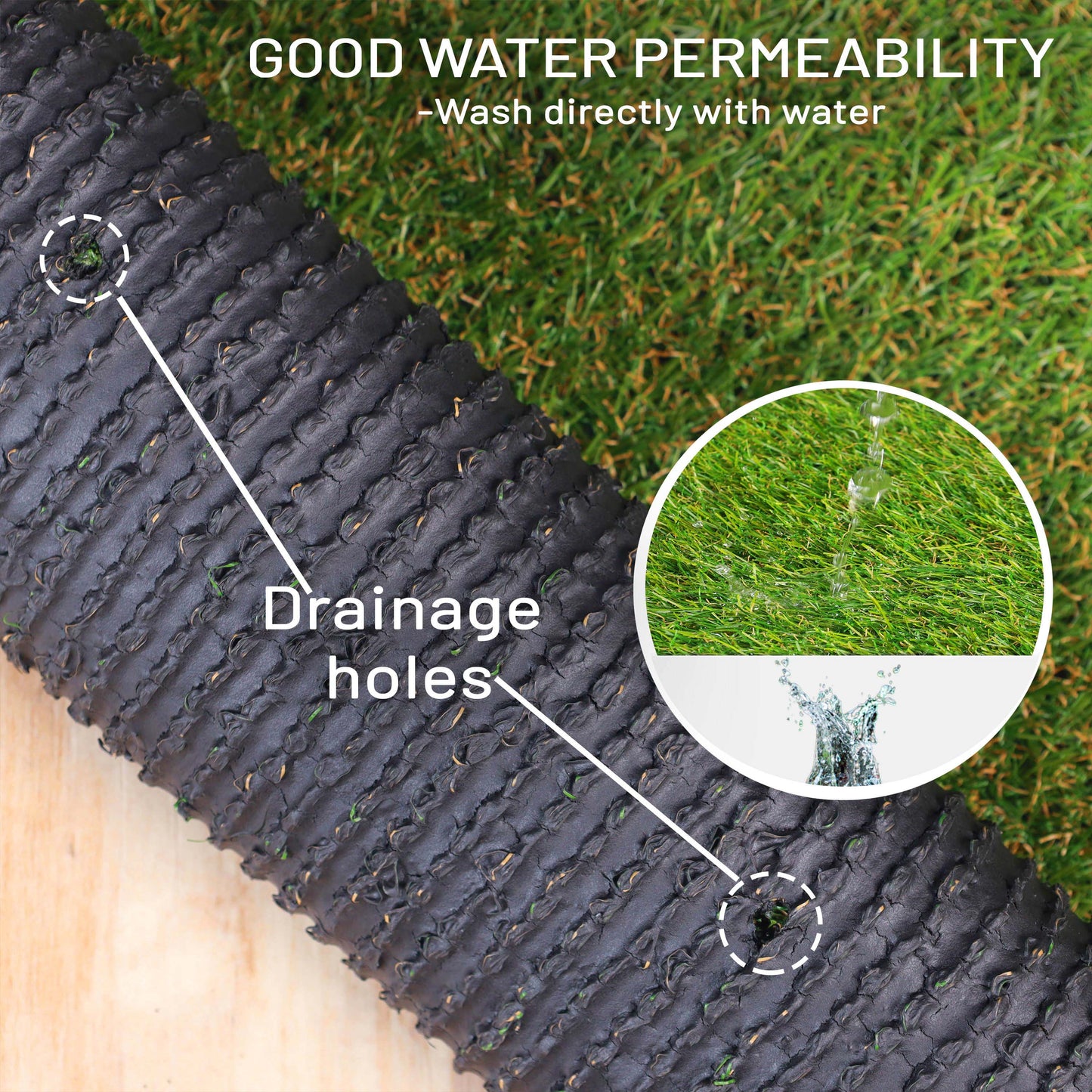 - Special Features: The realistic design and soft texture looks just like natural grass. Enjoy fresh looking grass all year long with minimal effort. Water permeable backing for sufficient drainage of rain or pet potty training mess.