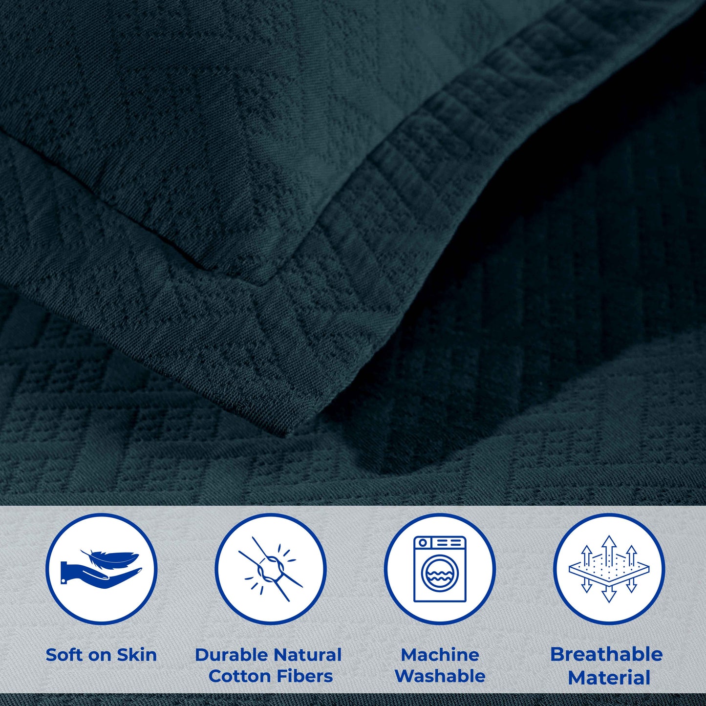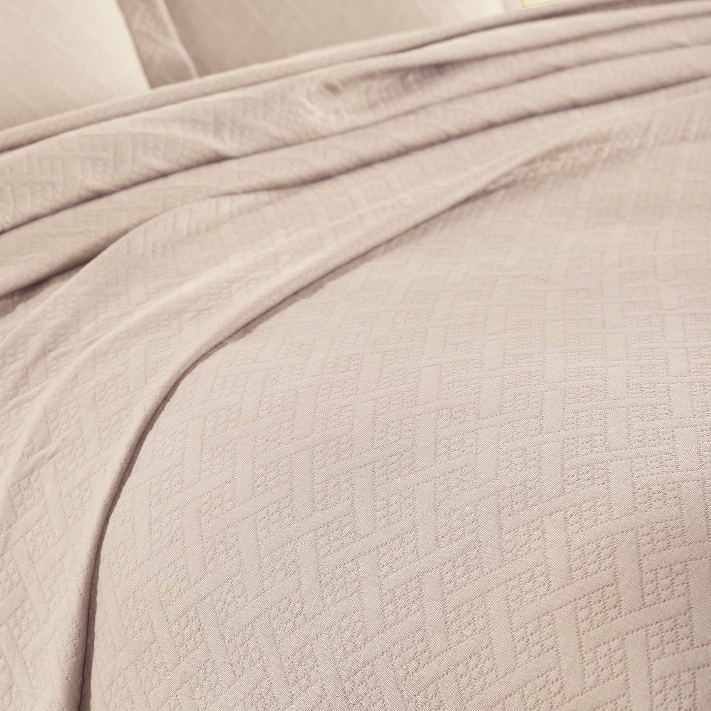 Decorate your bed with the elegant and charming design of the Jacquard Matelassé Cotton Basketweave 3-Piece Bedspread Set. This classic basketweave pattern is crafted from 100 percent Cotton and is woven into a matelassé pattern on a jacquard loom. Two matching pillow shams mirror the design of the bedspread for a fully coordinated look (Twin size includes one pillow sham). This bedspread can be used as an added layer to your current bedding ensemble or warm enough to use on its own. Pair this beautiful set with your existing bedroom décor for a statement-making look.