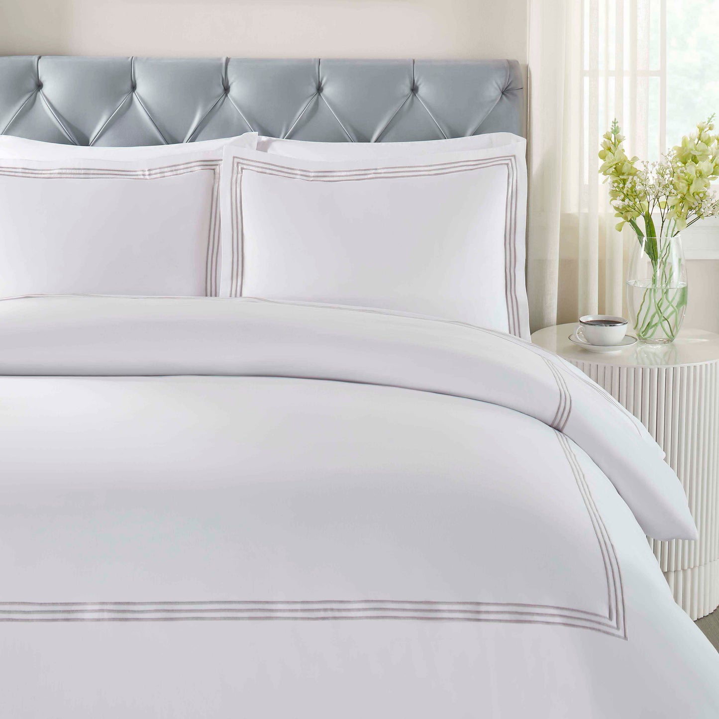 Perfect for any master or guest bedroom, our Brandon Cotton Three-Line Embroidered Duvet Cover Set is ideal for everyday use. Crafted from naturally soft and strong cotton, this cozy sheet set is breathable, durable and long-lasting. To securely keep your duvet insert or comforter in place, this duvet cover features hidden buttons for a streamlined look. Displaying an elegant three-line embroidery, this bedding set is a practical and luxurious update for your home.