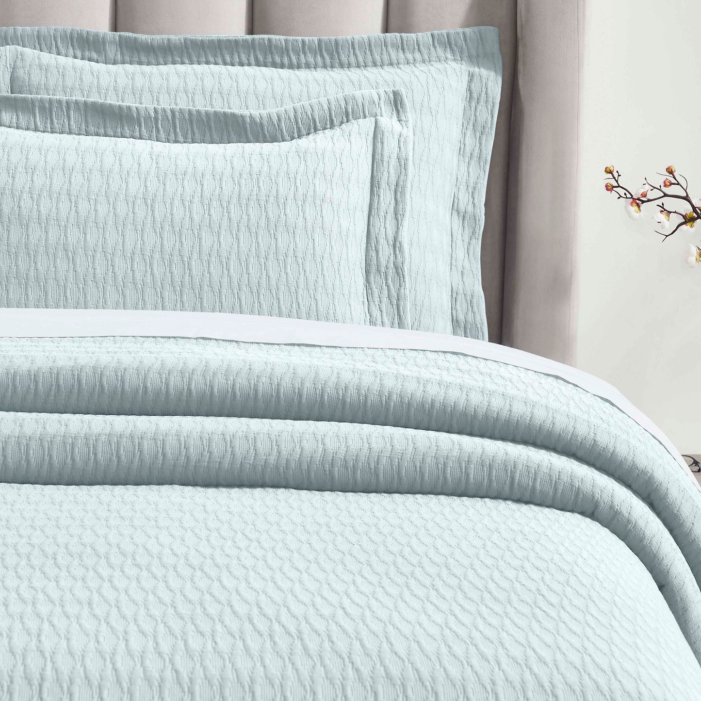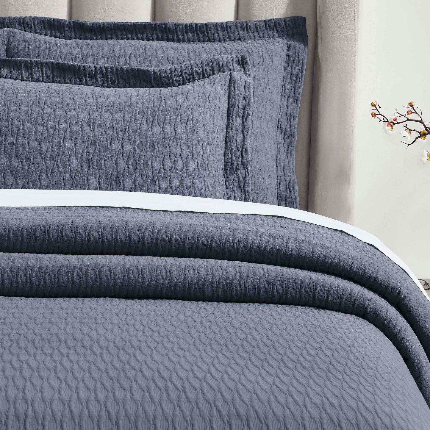 With our Calvert Matelasse Bedspread Set, you can easily enhance the look of your bedroom, sofa or daybed and create an inviting space. Crafted from luxurious and cozy cotton, this bedding set is available in a wide range of color options to match your bedroom decor style. Featuring a modern matelasse woven pattern in a diamond lattice design, this jacquard bedspread adds rich texture to your bed. Perfect for layering and adding a pop of color to your space, this bedspread set is warm enough to use on its own or as a layering accent in any room. Matching pillow shams are included to create a coordinating look. Add everyday elegance and a stylish accent to your bedroom decor with this beautiful bedspread set.