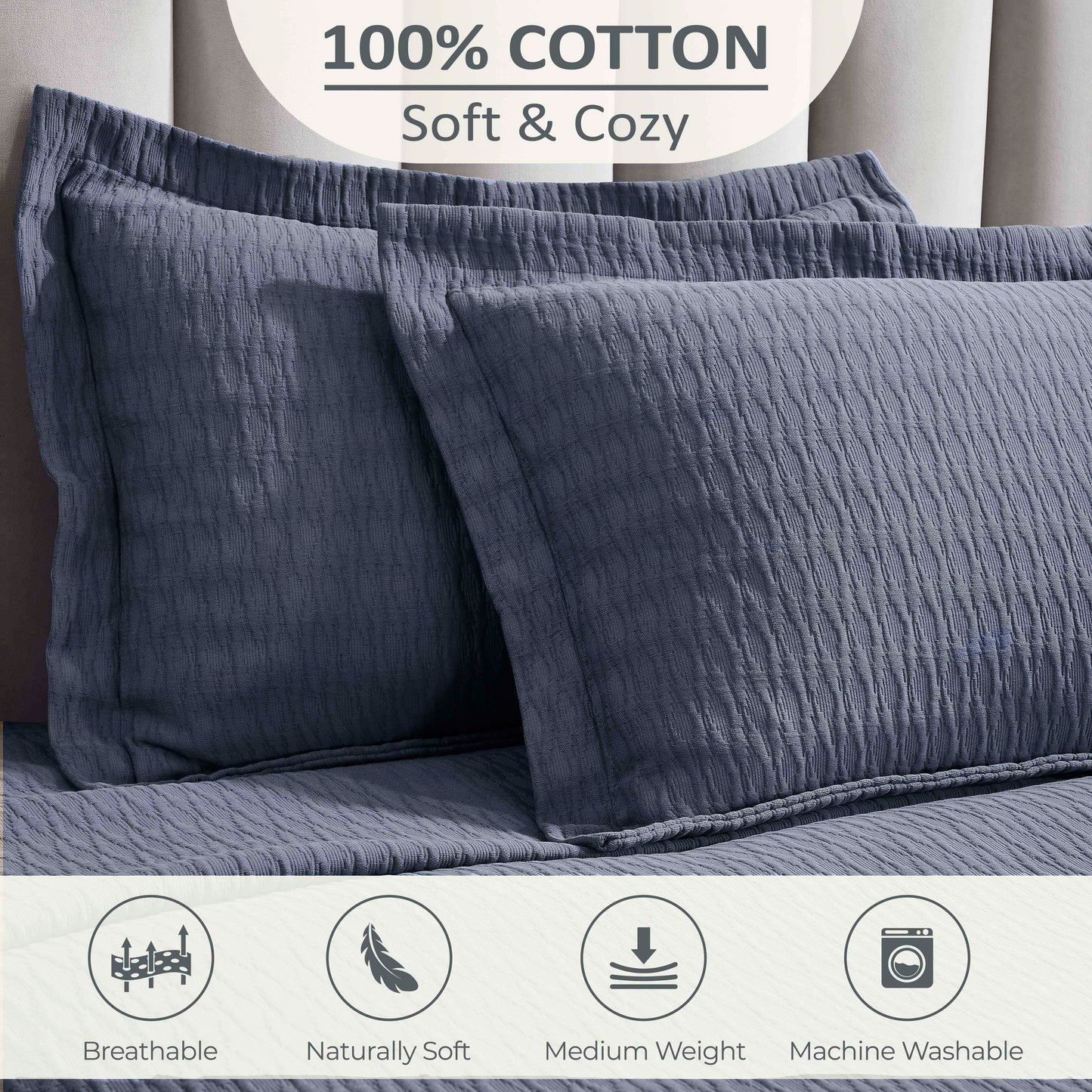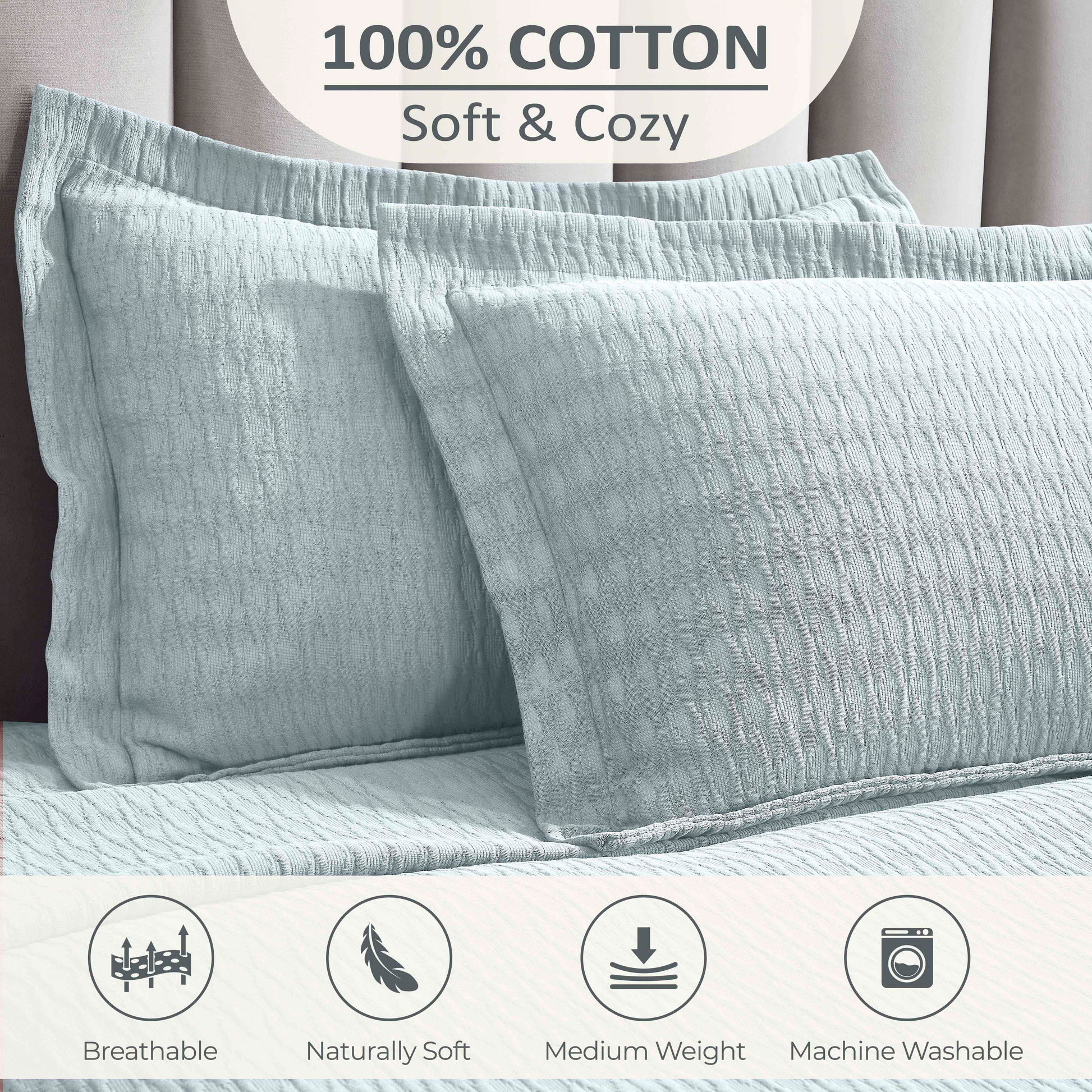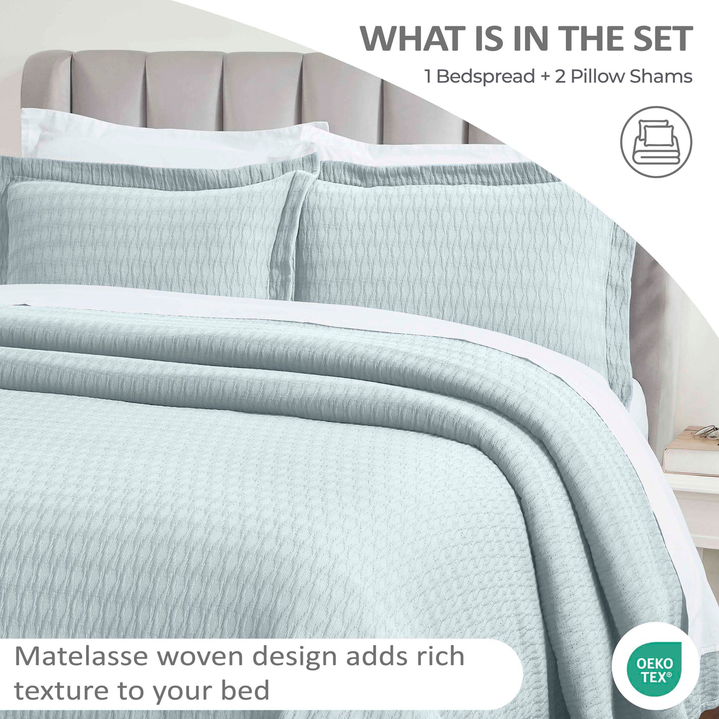 - Additional Features: Medium weight material provides maximum warmth and comfort. Raised matelasse woven design adds a rich layer to your bed for a refined look. Matching pillow shams feature envelope closure for easy access and a neat finish.