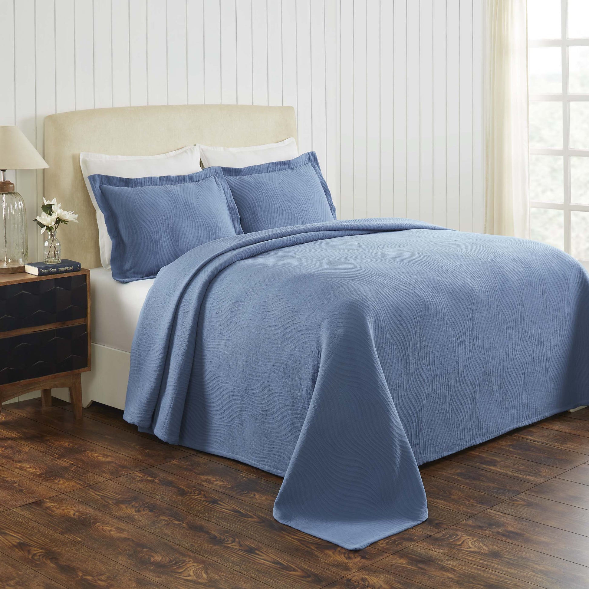 Rich with texture and oh-so-soft, the Cascade Cotton Jacquard Matelassé 3-Piece Bedspread Set transforms your bedroom into a soothing retreat. It features raised jacquard matelassé waves which offer a sculpted appearance, yet are ultra soft to the touch. The all-cotton construction provides just the right amount of warmth for any season, whether it's displayed on its own in warmer months or layered with your favorite blanket when the temperature dips. The pillow shams boast flanged edges and 6-inch envelope closure. This must-have set is offered in your choice of available sizes and colors for a seamless blend with your decor.