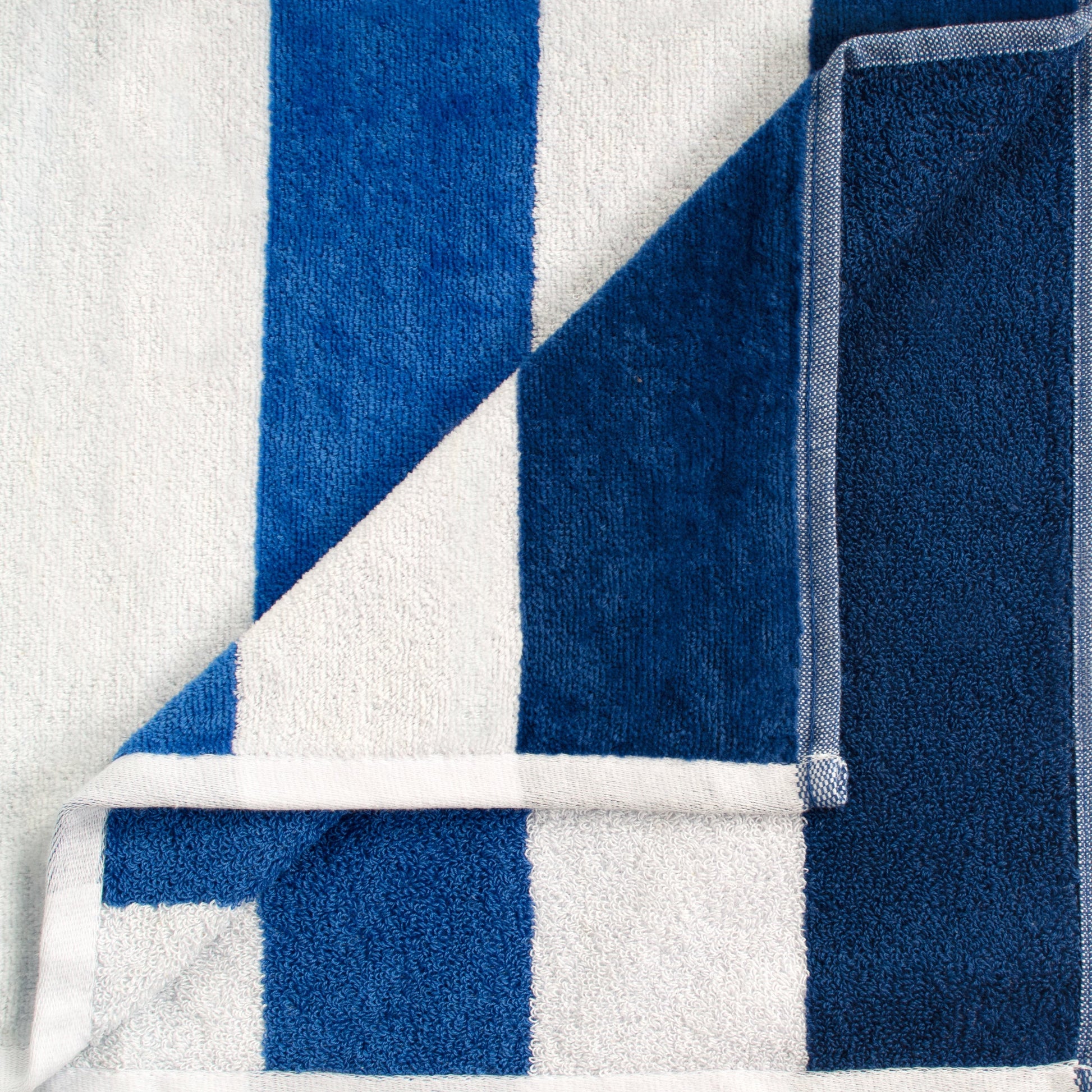 - Design Details: This striped beach towels with inverted color schemes in varying shades of blue is the summer essential you are missing. Soft and velvety velour cotton on one side is gentle to the skin and dries quickly; absorbent looped terry surface on the other side.